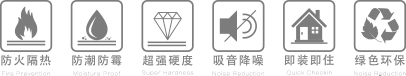 綠色環保 / 吸音降噪 / 防火隔熱 / 快裝快住 / 防潮防霉 / 高平整·強硬度